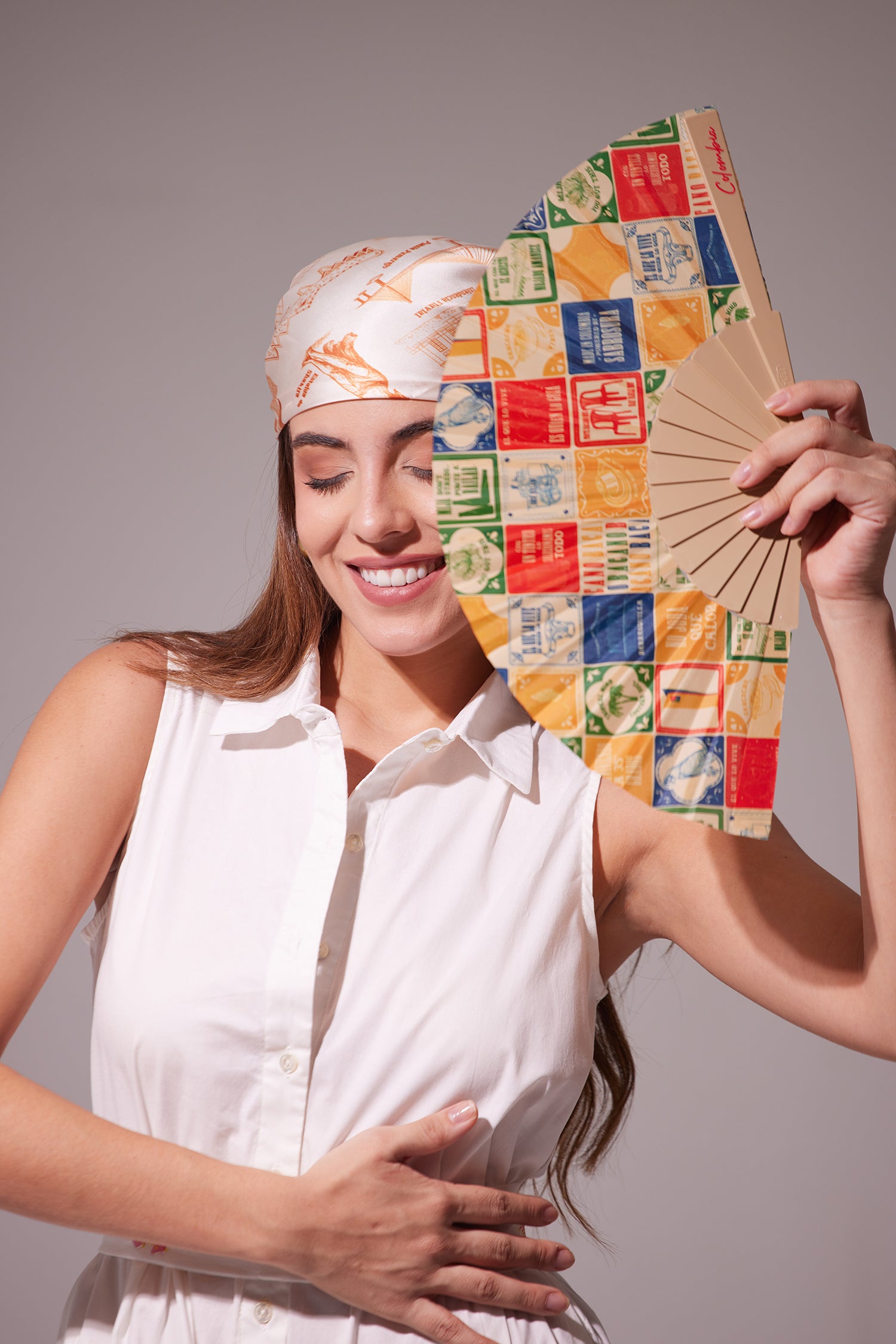 Abanico de mano plegable, estructura plástica, grabado en marco