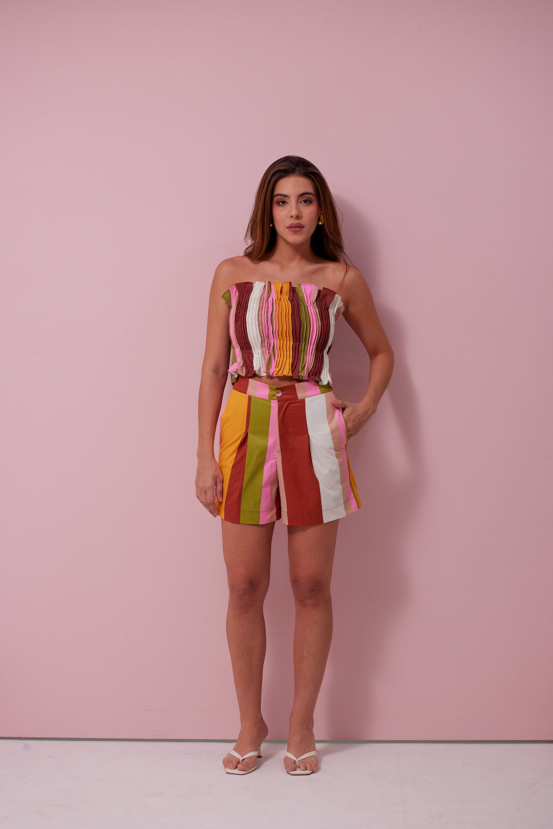 Top strapless con alforzas en parte frontal y cierre de zipper desprendible en espalda
